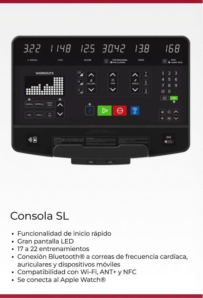 Aspire está disponible con la consola SL, que combina una funcionalidad simple con avances en la interacción del usuario, como conectividad Bluetooth® y compatibilidad con Apple Watch®, para una experiencia de entrenamiento más conectada y fluida.